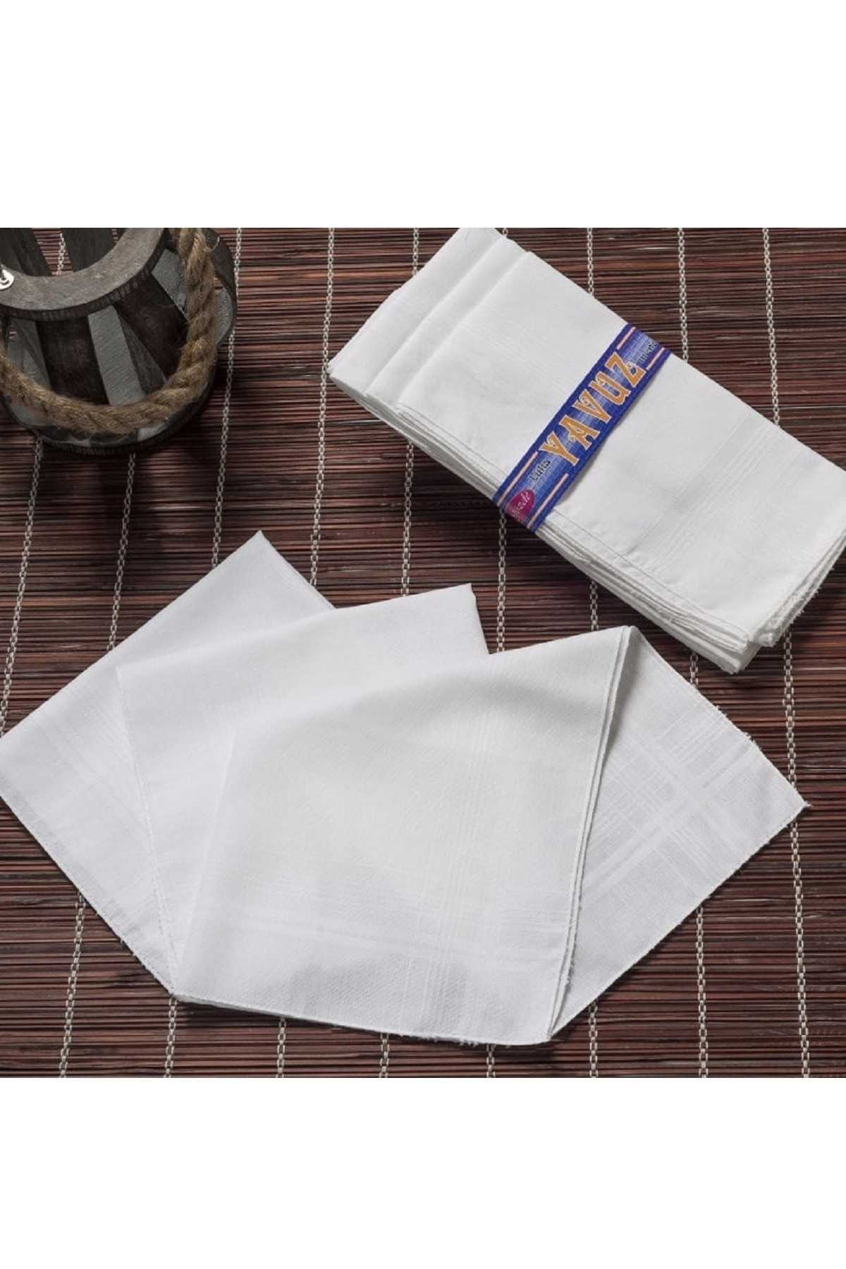Elif Mira 12 li El Cep Beyaz Kumaş Mendil 39x39 cm Pamuklu YM Beyaz Mendil